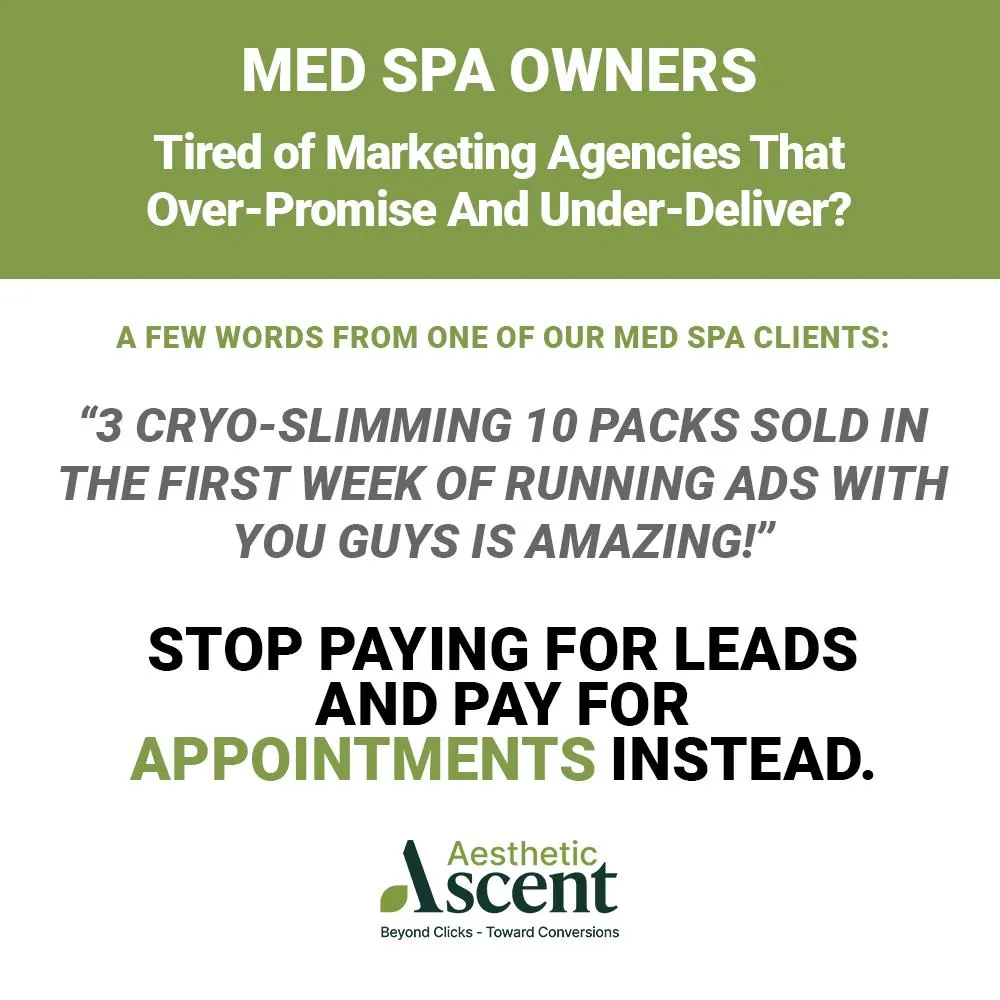 Built for medspas that want steady growth without the hassle, Aesthetic Ascent makes it simple to fill your calendar. We provide: